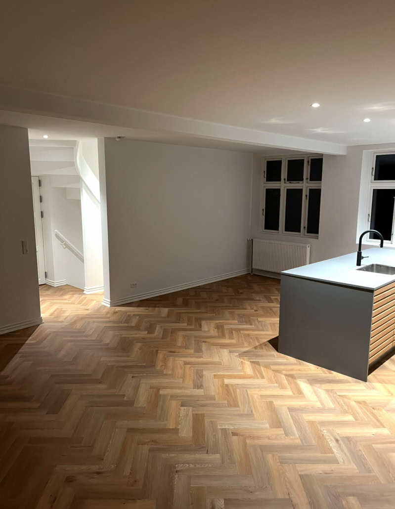 Et nyt gulv kan give hele rummet et frisk pust og en ny stil. Vi hjælper dig med at vælge den rette gulvtype, der passer perfekt til din bolig og kan hjælpe med både moderne eller klassiske udtryk.